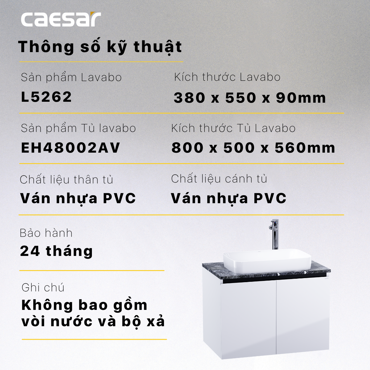 Lavabo kết hợp tủ treo L5262 + EH48002AWV
