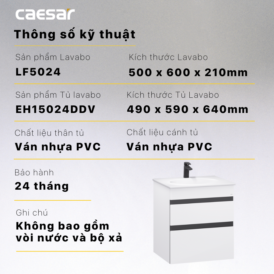 Lavabo kết hợp tủ treo lavabo - LF5024 + EH15024DDV