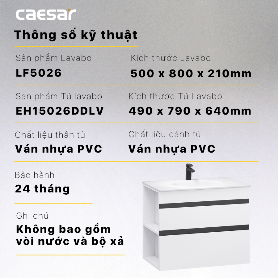 Lavabo kết hợp tủ treo lavabo - LF5026 + EH15026DDLV