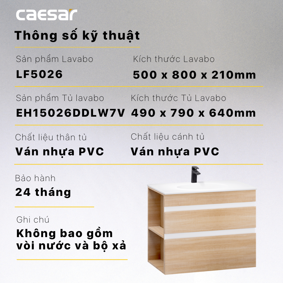 Lavabo kết hợp tủ treo lavabo - LF5026 + EH15026DDLV
