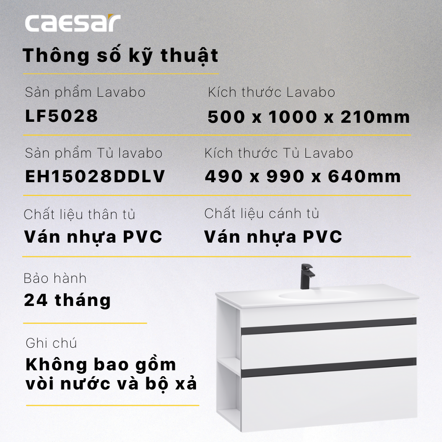 Lavabo kết hợp tủ treo lavabo - LF5028 + EH15028DDLV